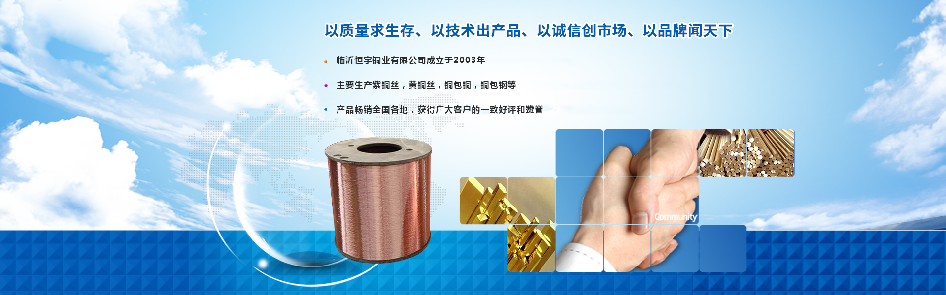 山東恒宇銅業(yè)有限公司成立于2003年,坐落于臨沂市半程鎮(zhèn)小湖村北湖工業(yè)園,位于中國(guó)物流之都--臨沂,這里不僅地理位置優(yōu)越,交通便利,而且經(jīng)濟(jì)、文化都很發(fā)達(dá)。公司主要生產(chǎn)電線(xiàn)電纜專(zhuān)用銅絲(紫銅絲、黃銅絲),摩擦材料專(zhuān)用紫銅黃銅切割線(xiàn),視頻網(wǎng)絡(luò)線(xiàn)和爆破用專(zhuān)用型號(hào)的銅絲同時(shí)銷(xiāo)售銅包銅銅包鋼等各種型號(hào)材料的銅絲塑料熱溶專(zhuān)用紫銅黃銅絲型號(hào)從0.50到1.20各種型號(hào)電阻符合國(guó)家標(biāo)準(zhǔn)廣泛應(yīng)用于電線(xiàn)電纜各種汽車(chē)電動(dòng)汽車(chē)線(xiàn)束.400型大軸專(zhuān)為光纜.視頻.監(jiān)控,爆破導(dǎo)線(xiàn)專(zhuān)用銅絲。